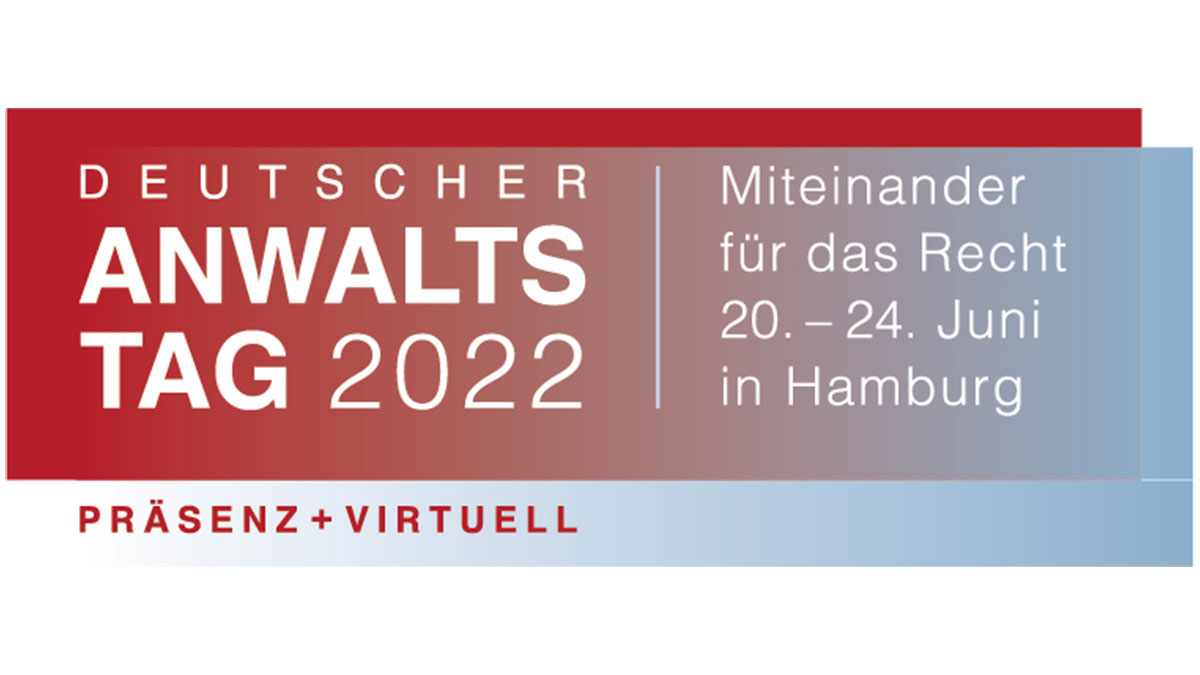 Vom 20. bis 24. Juni 2022 findet der Deutsche Anwaltstag 2022 unter dem Motto „Miteinander für das Recht“ statt. Über 70 Fachveranstaltungen der Arbeitsgemeinschaften und Ausschüsse des DAV werden als Online-Seminare und Präsenzveranstaltungen angeboten. Die Online-Seminare finden vom 20. bis 22. Juni 2022 und die Präsenzveranstaltungen vom 22.bis 24. Juni 2022 im CCH Congress Center Hamburg statt.
